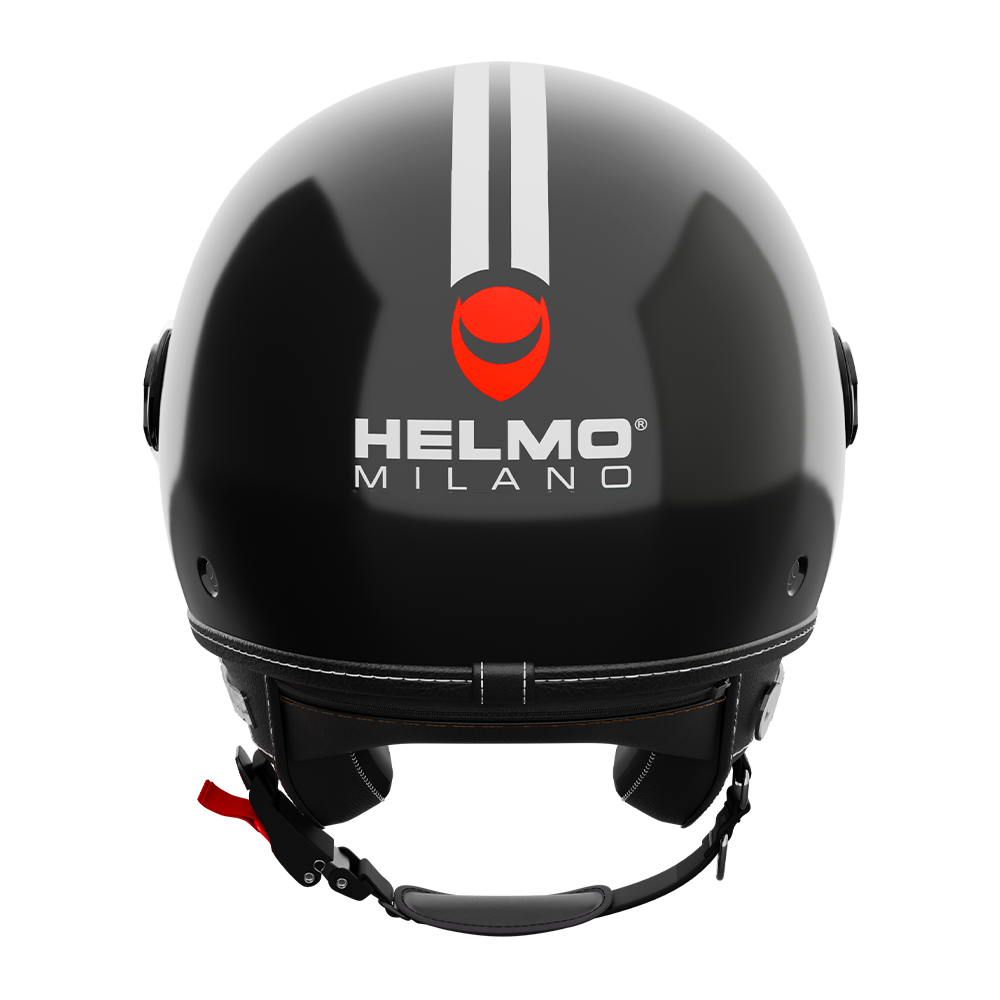 - Cinturino sottogola con chiusura di sicurezza micrometrica in metallo a sgancio rapido e anello antifurto in acciaio.