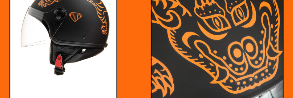 From the collaboration between Helmo Milano and IUTER, “cult” brand of youth fashion, was born the Demi-Jet helmet “Tibetan Tiger Rug” . The helmet boasts the iconic IUTER Tibetan tiger rug design, used in Buddhist culture to provide protection whilst meditating. The interior of the helmet is printed with the “Tiger Camo” pattern in orange …